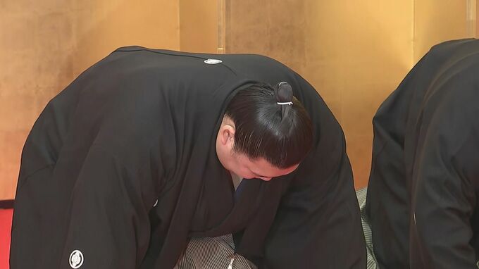茨城県阿見町の二所ノ関部屋での昇進伝達式では、使者の2人の親方が訪れ全会一致で大関に推挙されたことを伝え、大の里が口上を述べました。