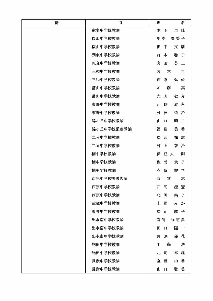 【中学校教員転任転補】