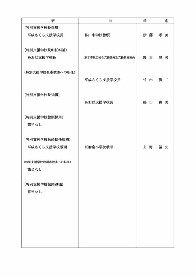 <熊本市立高校・専門学校・幼稚園・特別支援学校の人事異動>