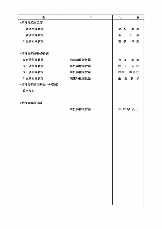 【幼稚園教諭採用】【幼稚園教諭転任転補】【幼稚園教諭退職】