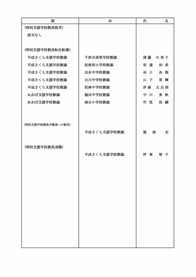 【特別支援学校長採用】【特別支援学校長転任転補】【特別支援学校長市教委への転任】【特別支援学校長退職】【特別支援学校教頭転任転補】