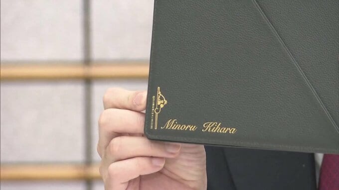 インタビューの最後に、木原官房長官は愛用しているというバインダーを披露しました。支援者から贈られたもので、熊本県のPRキャラクター「くまモン」が覗いているデザインです。