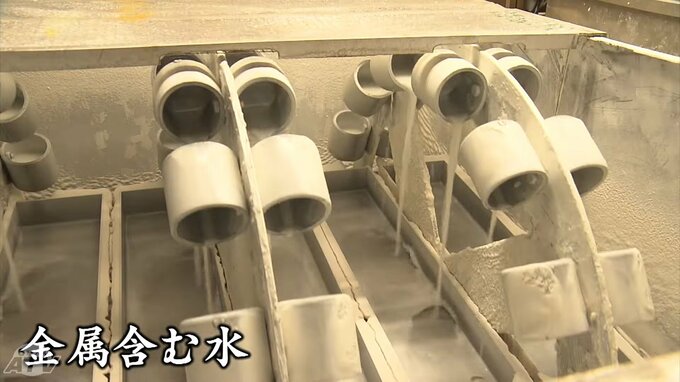 採掘が終わったあとも、鉱山からは金属を含んだ水が流れ出ています。このため、いまなお、処理場で廃水を中和し、金属を取り除く作業が続けられていました。