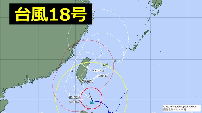 【ダブル台風17号18号】非常に強い台風18号、さらに勢力強め925hpa・最大瞬間風速70…
