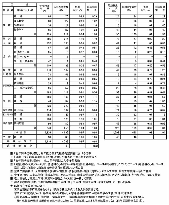 【全校掲載】全日制公立高校の全体の倍率は0.97倍 過去最低を更新 高校入試の第2次進路希望調査 山梨県