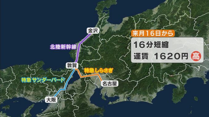 名古屋から金沢までは、これまでより時間は16分短縮されるということですが、運賃は1620円高くなります。