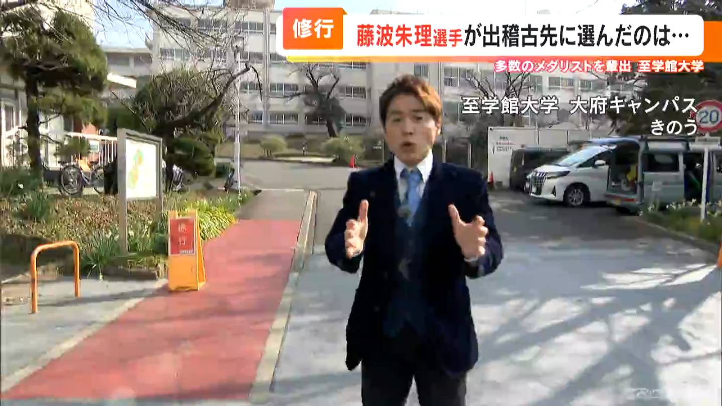 「至学館大学にやってまいりました。こちらにパリオリンピック女子レスリングで金メダルを目指す藤波朱理選手が、出稽古に来るそうなんですよ。きょう初日だそうです。なぜなんですかね」
