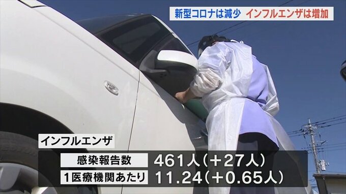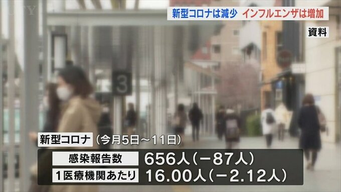 1週間の県内の感染報告数が発表され新型コロナウイルスは前の週より減った一方インフルエンザはやや増えました。