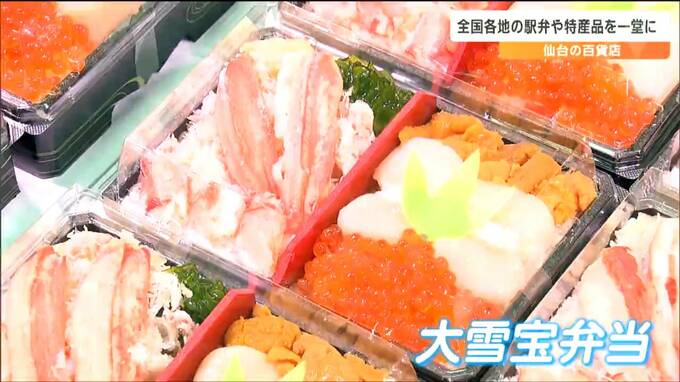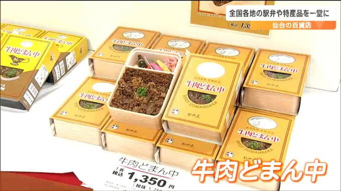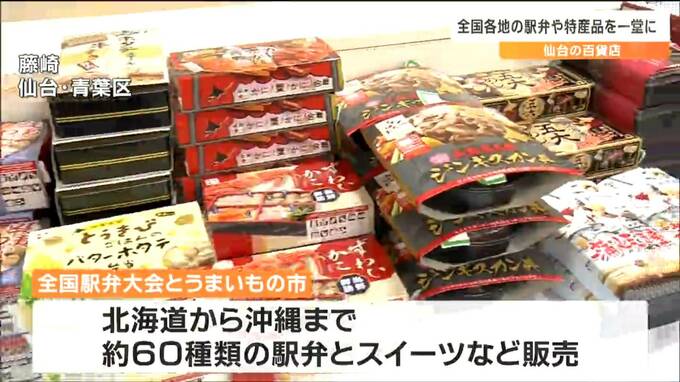 仙台市青葉区の「藤崎」で開かれている「全国駅弁大会とうまいもの市」には、北海道から沖縄までおよそ60種類の駅弁や、スイーツなどが並んでいます。