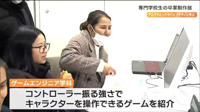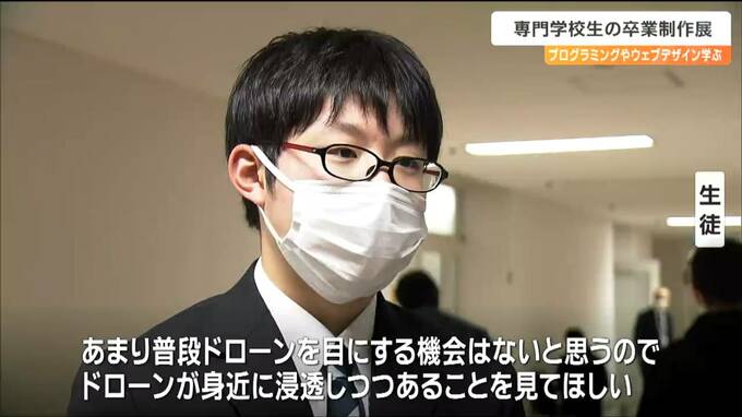 プログラミングやウェブデザインなどが学べる仙台の専門学校で、卒業制作の展示会が、16日から始まりました。