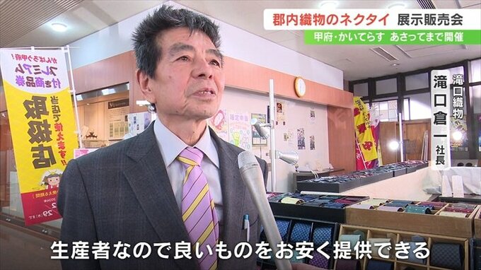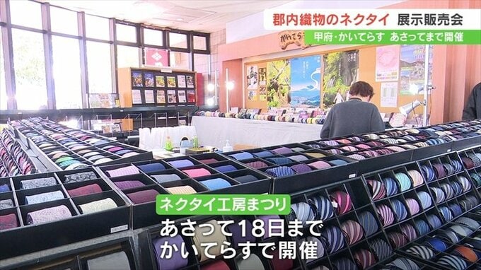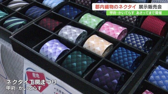 ネクタイ工房祭りはあさって18日まで、甲府市の「かいてらす」で開催されています。