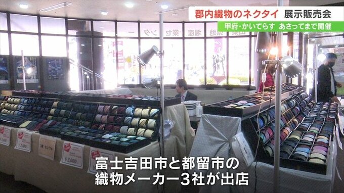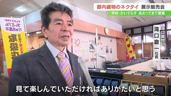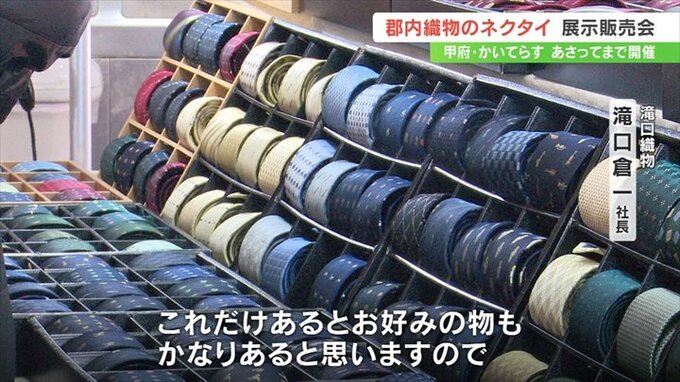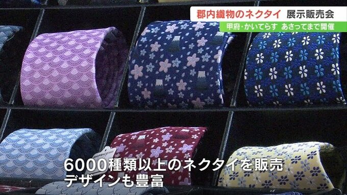 郡内織物で作られた6000種類以上のネクタイが展示・販売される催しが、甲府市で始まりました。