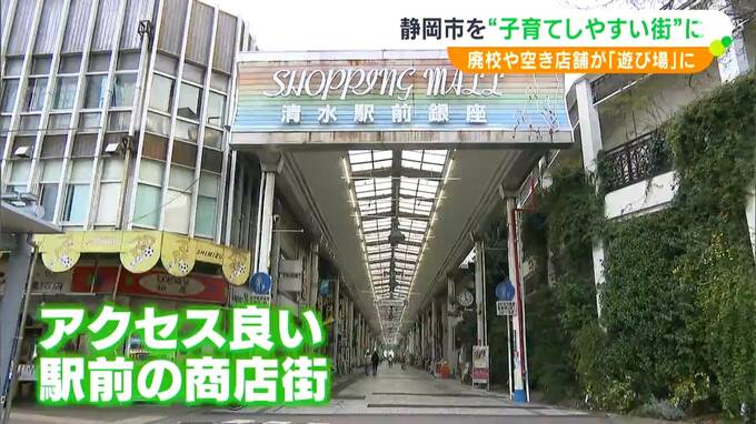 さらに市が着目したのは、アクセスの良い駅前の商店街です。清水駅前銀座商店街と協力して、アーケード下の空間で子育て関連のイベントを開いたり、空き店舗を活用した遊び場を設置する計画です。