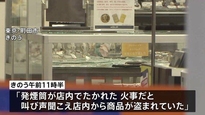 17日、東京・町田市のリサイクルショップで発煙筒がたかれ、ネックレスが盗まれました。警視庁は、店内で「火事だ」と叫び逃げた人物の行方を追っています。17日午前11時半ごろ、町田市原町田のJR町田駅近くにある…