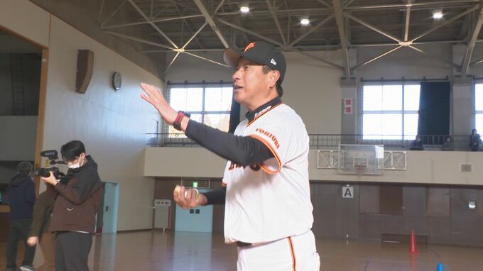 石川県七尾市の城山体育館で開かれた「読売ジャイアンツ×能登半島スポーツ交流会2024」には、能登地域に住む小中学生約100人が参加しました。かつて巨人のサウスポーとして活躍しジャイアンツ女子チームを率いる宮本和知監督が指導にあたります。