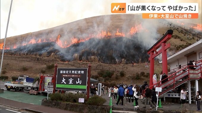 静岡県伊東市で、山全体が炎に包まれる早春の風物詩大室山の山焼きが行われました。山焼きは伊東市の大室山でカヤの新芽を育てるため、約700年前から伝わるものでいまは観光行事にもなっています。観光客にも、松…