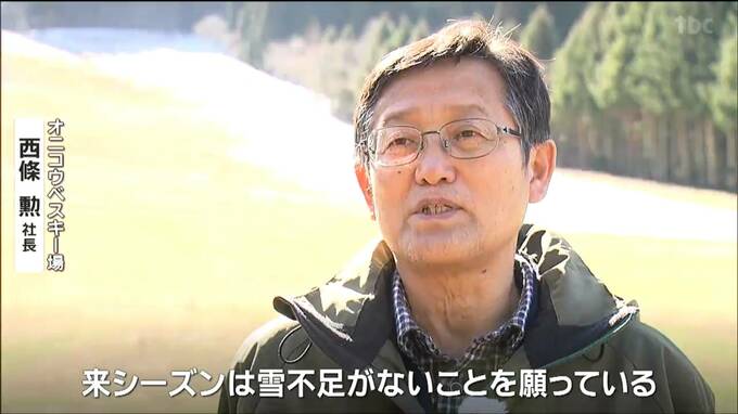 オニコウベスキー場・西條勲社長:「2月中旬でこの通り雪がないというのはまったく予想していなかったので驚いている。来シーズンは雪不足がないことを願っている」