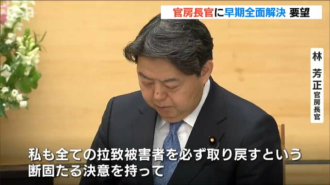 3人は拉致問題担当大臣を兼ねる林芳正 官房長官に面会し要望書を手渡しました。