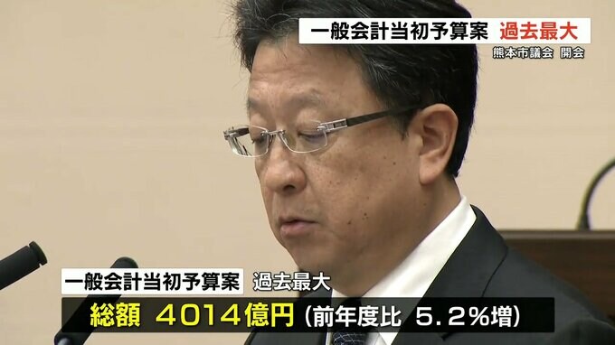 熊本市議会がきょう(2月19日)開会し、過去最大となる一般会計当初予算案など101議案が提出されました。一般会計当初予算案は前年度から5.2%増の、総額4014億円で過去最大となりました。大西市長「この度、こども…