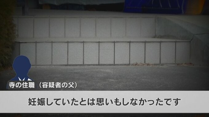 住職の男性は「ダボっとした緩めの服を着ることが多く、特に変わった様子もなかったので妊娠していたとは思いもしなかったです。寺の住職としてご迷惑をおかけしてただただ申し訳ないです。」と話していました。