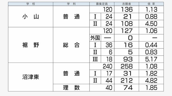 ◇沼津西、沼津城北、沼津工業、沼津商業、沼津市立沼津、吉原、吉原工業、富士、富士東