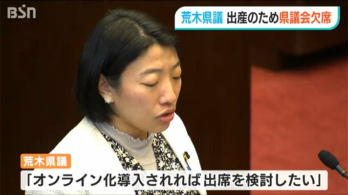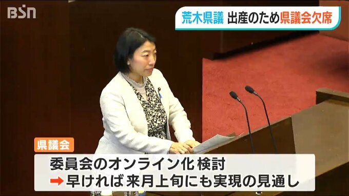 新潟県の新年度予算案などを審議する2月県議会が9日、開会しました。自民党の荒木法子 県議が出産のため県議会を欠席しました。県議が出産で議会を欠席するのは初めてのケースで、荒木県議は今後、委員会で導入される見通しのオンラインでの参加を検討しています。