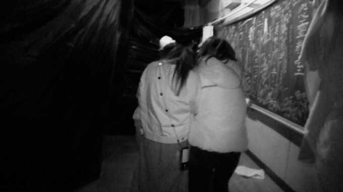 恐る恐るお化け屋敷に入っていく子供たちや親子連れ。ライトを頼りに真っ暗な夜の廊下や教室を進んで行くと・・・次々に飛び出すお化け。恐怖で泣き出してしまう人も。