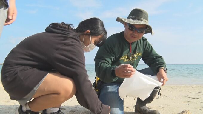 参加者たちは海岸に漂着した発泡スチロールやペットボトル、漁具などを拾い集めたほか、砂浜に埋もれたごみを掘り起こして回収しました。