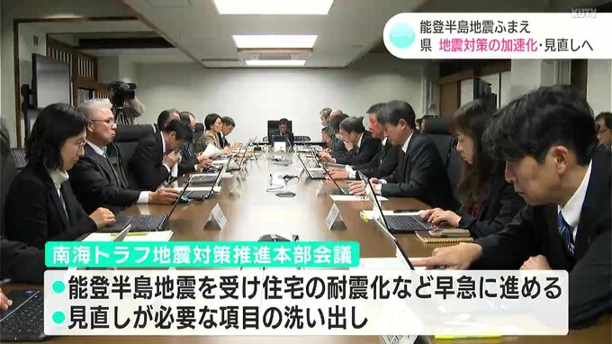 近い将来必ず起きるといわれる南海トラフ地震への対策を検討する会議が高知県庁で開かれました。能登半島地震を受け、住宅の耐震化などに早急に取り組むことを確認しました。元日に発生した能登半島地震では広範囲…