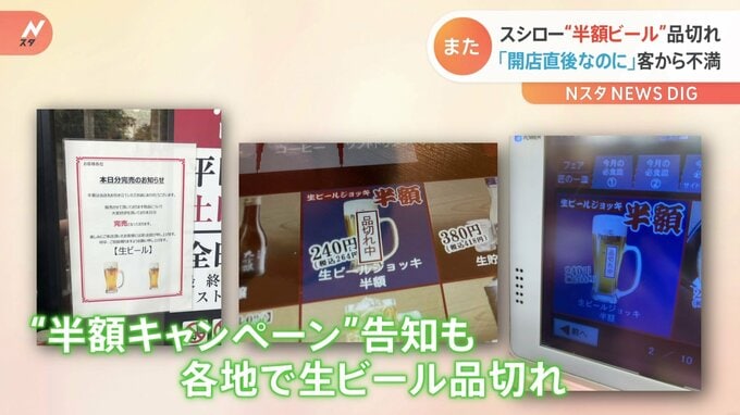 回転寿司大手の「スシロー」。「生ビール半額」キャンペーンで新たな問題が発覚です。528円の生ビールが何杯飲んでも“半額”!7月13日から回転寿司大手の「スシロー」が始めた魅力的なキャンペーンですが…15日に…