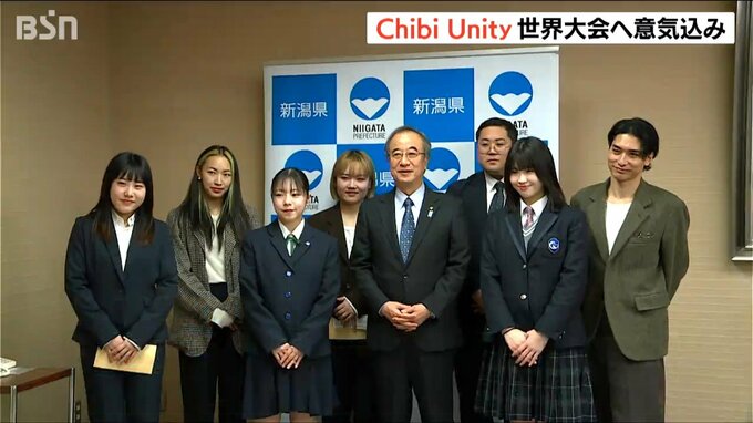 新潟市を拠点に活動するダンスチーム「Chibi Unity(チビユニティ)」が花角知事のもとを訪れ、アメリカで開かれる世界大会への意気込みを語りました。花角知事のもとを訪れたのは、「チビユニティ」のメンバー7人…