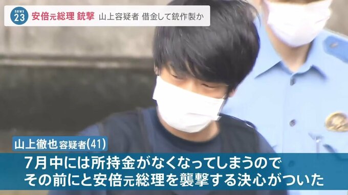 山上容疑者は供述で「7月中には所持金がなくなってしまうので、その前に安倍元総理を襲撃する決心がついた」と述べています。警察は銃を作る材料などに金をあてていた可能性もあるとみて調べています。