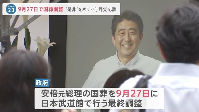 安倍元総理の国葬をめぐっては、政府が9月27日に東京・千代田区の日本武道館で行うことで最終調整していることがわかりました。
