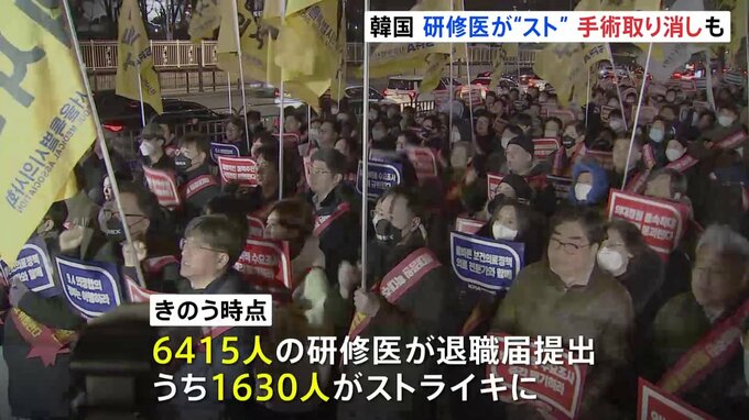 韓国で医学部の定員拡大に反対する研修医が事実上のストライキに突入し、医療活動に影響が出ています。韓国政府は来年度から、医学部の定員を2000人増やすと発表しましたが、医師団体は「教育の質が下がる」などと…