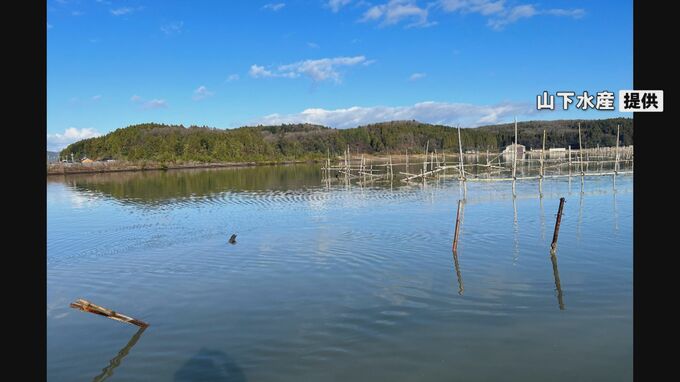 店を運営する山下水産によりますと、津波によりカキの稚貝をつるす いかだが崩れ、半分以上が流される被害がありました。