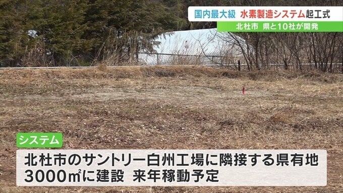 山梨県北杜市のサントリー白州工場で、国内最大級の水素製造能力を持つシステムの建設工事が始まりました。