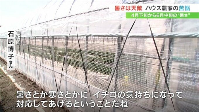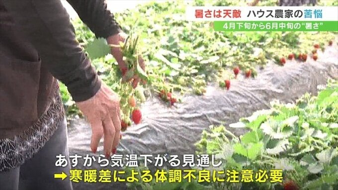 さらに暖かさでミツバチの動きが活発になって花にとどまらず、受粉が遅れるおそれもあり、農家側は寒暖差を利用した換気で乗り切ろうとしています。