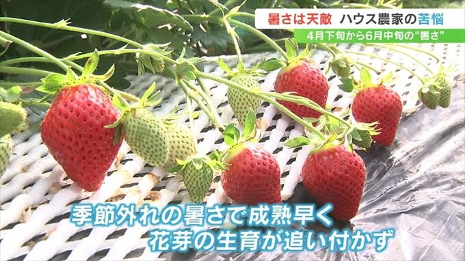 一方この時期に春の陽気が続くことは、ハウス栽培のイチゴには大敵となるようです。