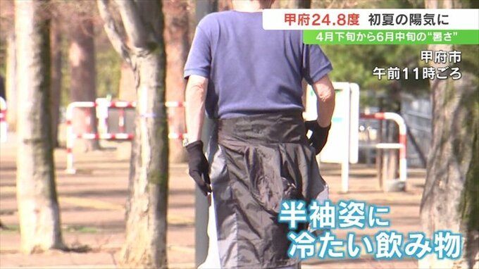 甲府市内では半袖で過ごす人や、冷たい飲み物を手にした人が多く見られました。