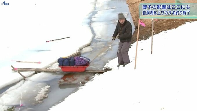 暖冬の影響で冬の風物詩・岩洞湖(岩手・盛岡市)の氷上ワカサギ釣りが20日、終了しました。過去最も早い「さお納め」です。(リポート)「こちら岩洞湖では氷が解けたり、割れたりしているということで、けさ岸へ…