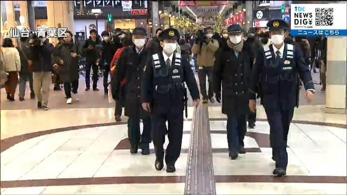 仙台市青葉区の一番町商店街などでのパトロールには、警察と市の職員が参加しました。