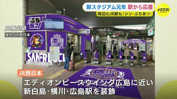 23日のJリーグ開幕を前に、広島市の新しいスタジアム「エディオンピースウイング広島」に近いJRの駅もサンフレッチェ応援モードになります。JR西日本広島支社の 広岡研二 支社長と、サンフレッチェ広島の 仙田信吾…