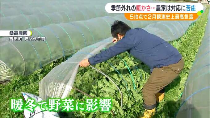 吉田町の桑高農園では、生産している約40種類の冬野菜のほぼすべてで、収穫が早まっていて、対応に苦慮しています。
