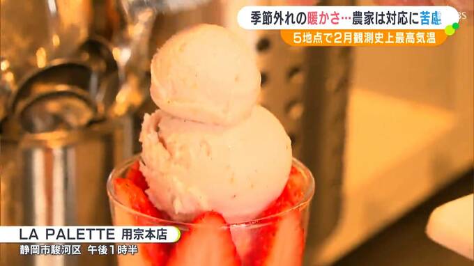 2月20日の静岡県内は季節外れの陽気となり、5か所の地点で2月の観測史上、最高の気温となりました。ジェラート店に多くの客が訪れる一方で、農家は、暑さで野菜の収穫時期が早まり対応に苦慮しています。
