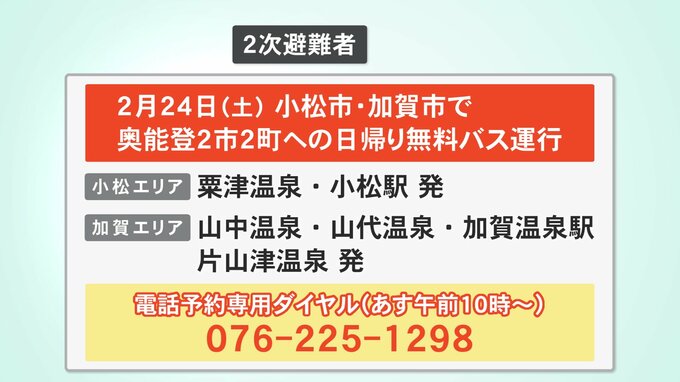 南加賀地区に避難中の被災者が自宅への一時帰宅に使うことができる日帰りの無料バスの運行が24日に行われます。