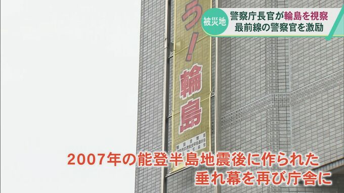 また、露木長官は、小坂裕輪島署長から、再度の復旧・復興のメッセージを県民に送るため2007年の能登半島地震後に作られた垂れ幕を庁舎に再び掲げたことを伝えられました。
