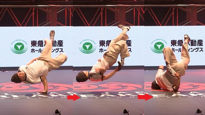 DJがかける音楽に合わせて、技術や表現力それに完成度などを競うブレイキン。その音楽はDJが選曲し、選手は事前に知ることが出来ない。それでもISSINは、自らのダンスに新技“ももたろうトラックス”を織り込み、初めてShigekixに競り勝ち、会心の勝利を上げた。