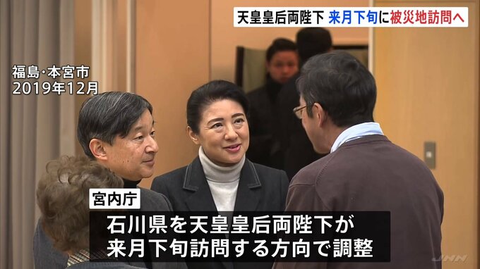 能登半島地震の被災地・石川県を、天皇皇后両陛下が来月下旬、訪問する方向で宮内庁が調整していることが分かりました。被害の大きかった珠洲市や輪島市、能登町などを中心に視察するほか、避難所では被災者らとの…