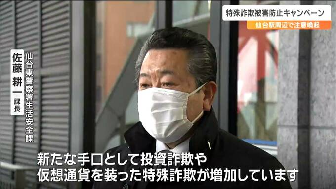 特殊詐欺の被害に遭わないよう呼びかけるキャンペーンが21日、仙台駅周辺で行われました。また、このキャンペーンに合わせて、大型ビジョンなどでは、特殊詐欺の手口や対策を紹介する映像も流されています。