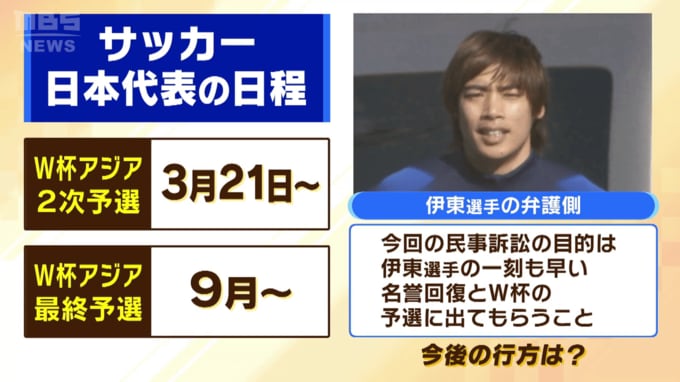 伊東選手側は今回の民事訴訟の目的は「一刻も早い名誉回復とワールドカップの予選に出てもらうこと」としています。
